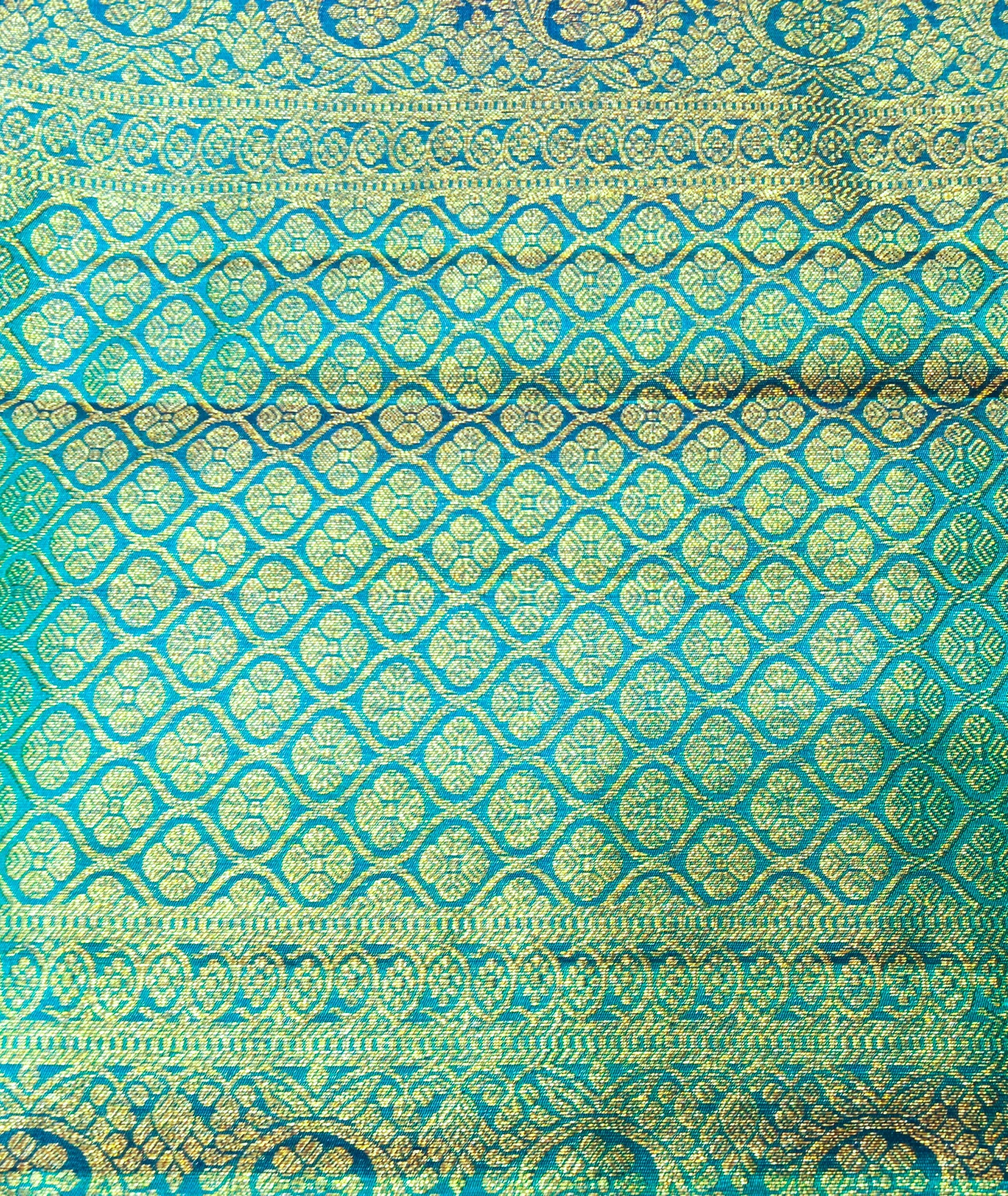 A regal blend of deep blue elegance and vibrant turquoise charm, woven to perfection for timeless grace. Perfect for weddings and festive occasions, it radiates heritage and sophistication.