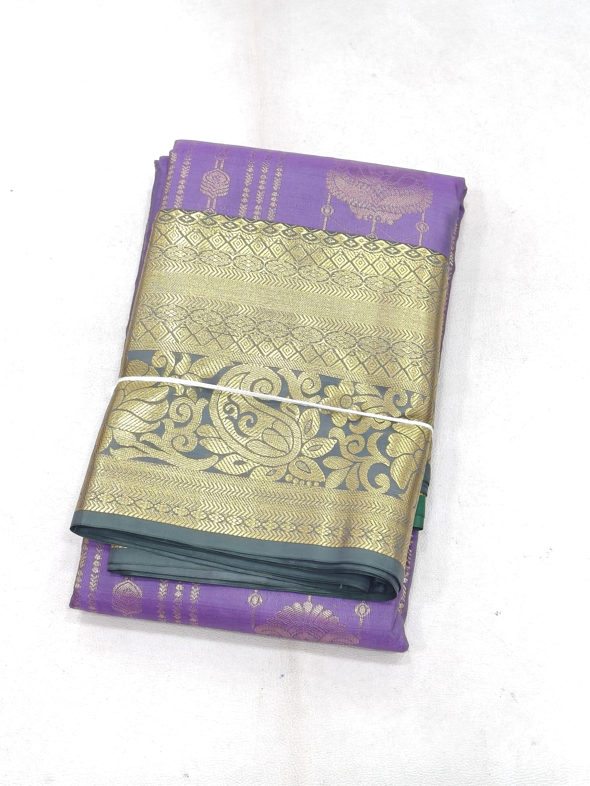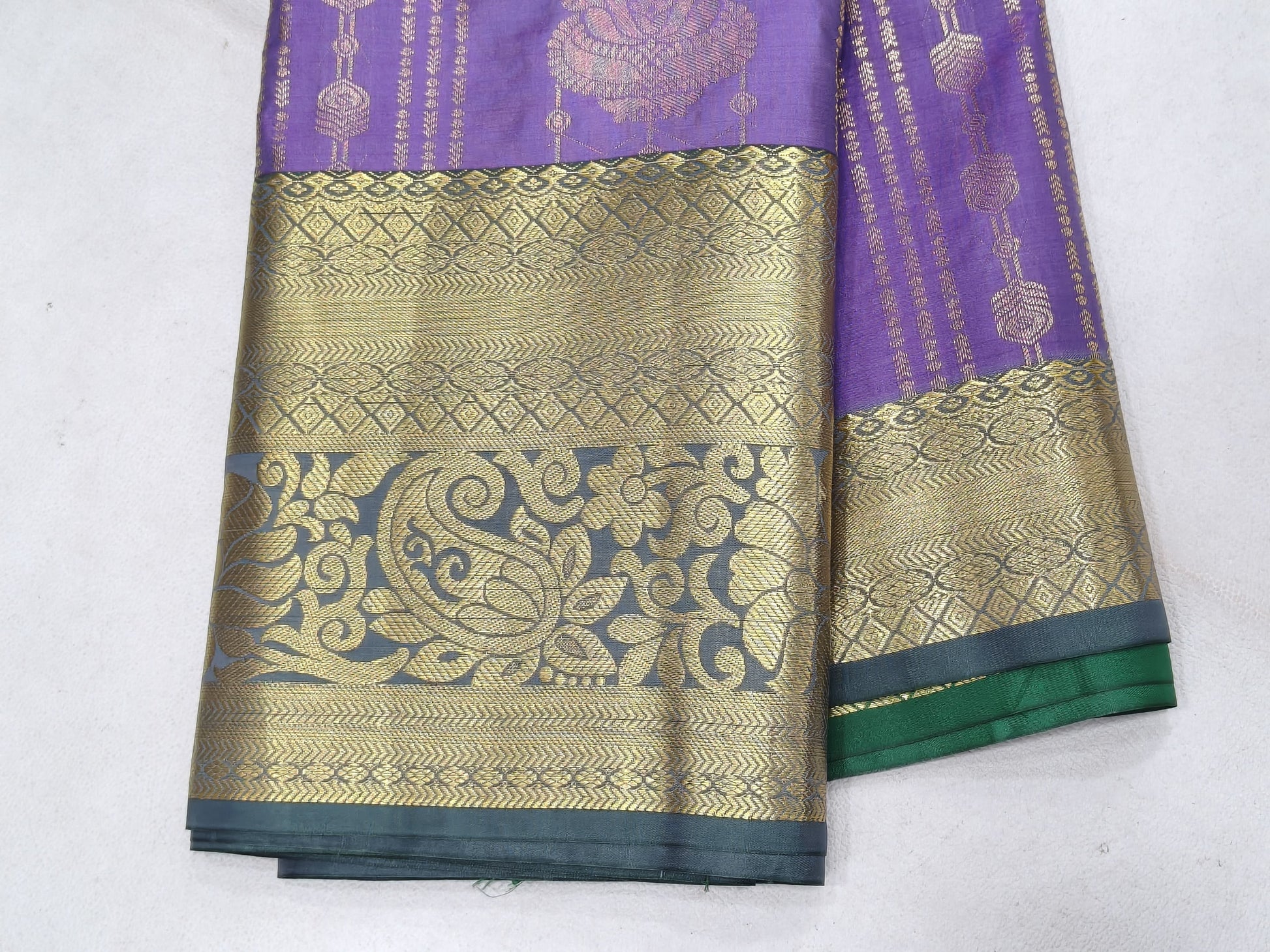 Purple Soft Silk Saree with Contrast Green Border – This luxurious saree blends rich purple soft silk with a vibrant contrast green border, creating an elegant and timeless look. Perfect for weddings, festive occasions and special celebrations.